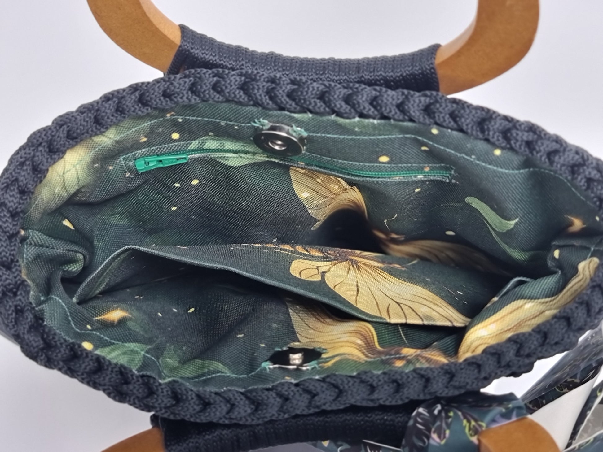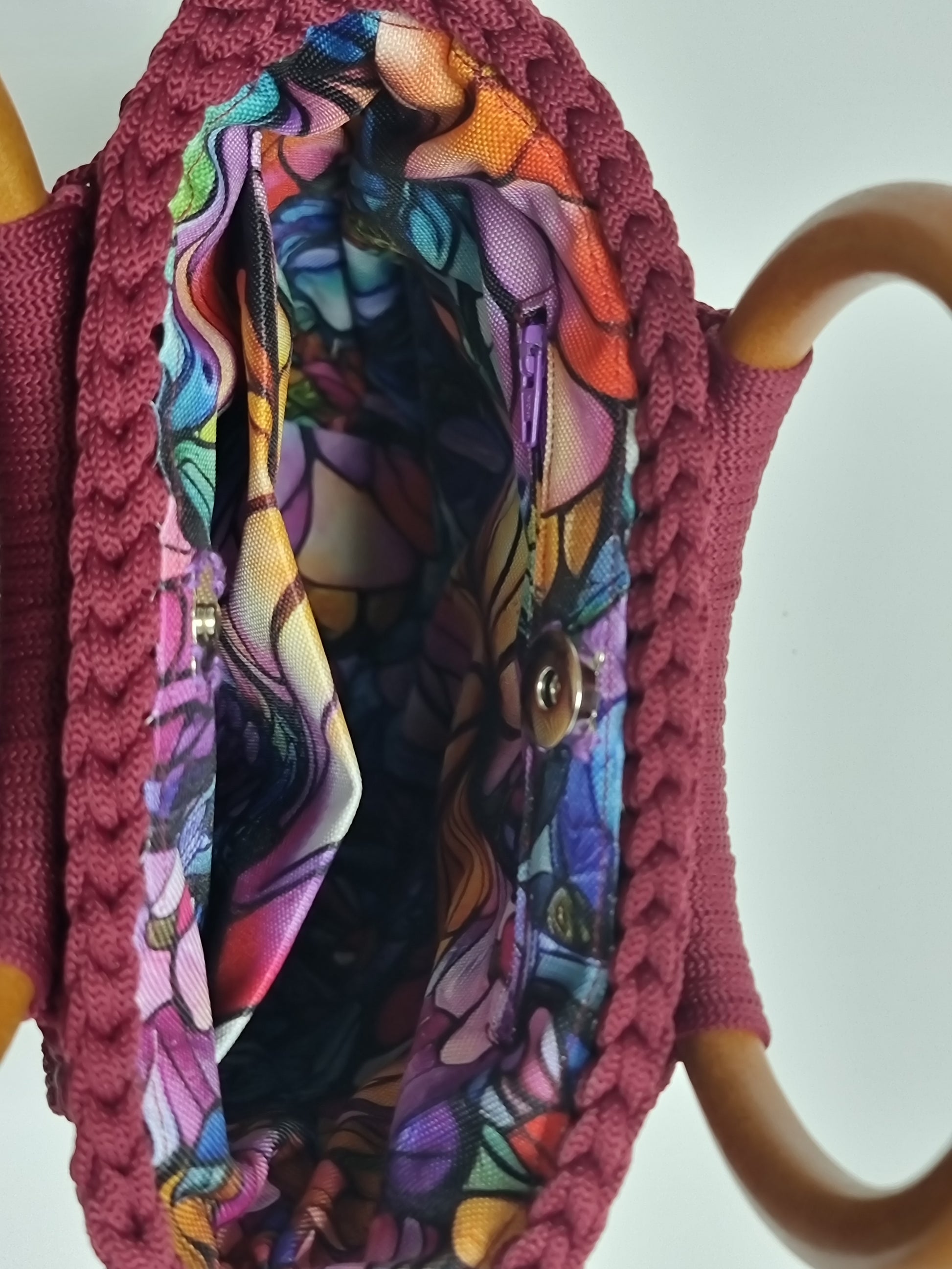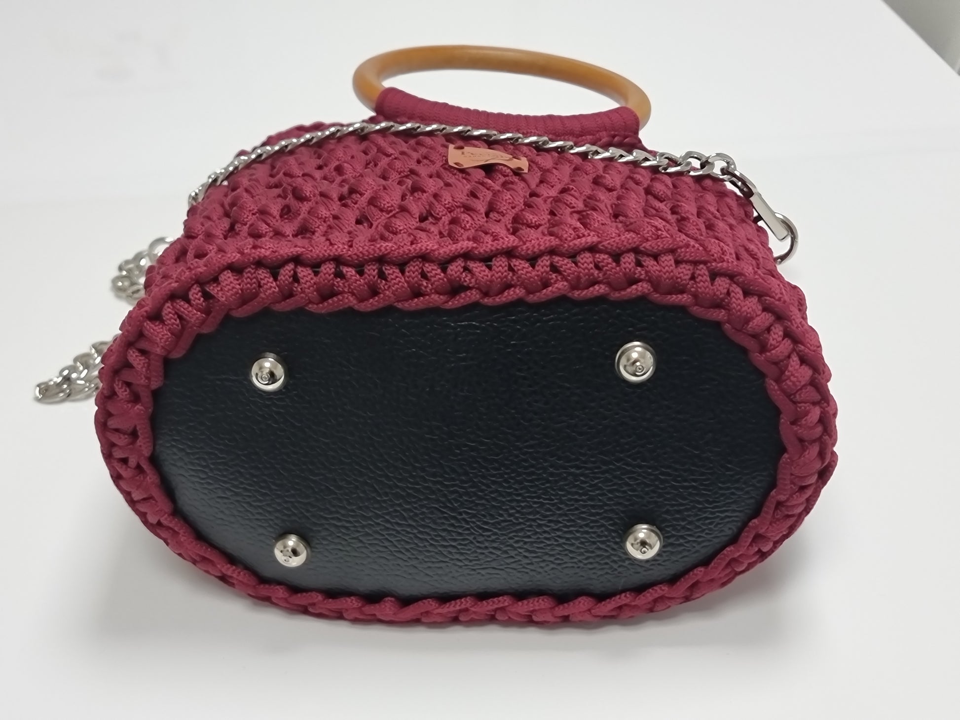 Each piece features beautifully crafted wooden handles, warm, smooth, and timeless, adding a natural accent that pairs perfectly with the deep, expressive colours of the yarn. Whether styled with a sleek silver chain or complemented by a decorative scarf, these bags combine elegance with everyday practicality.